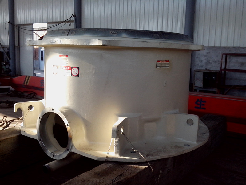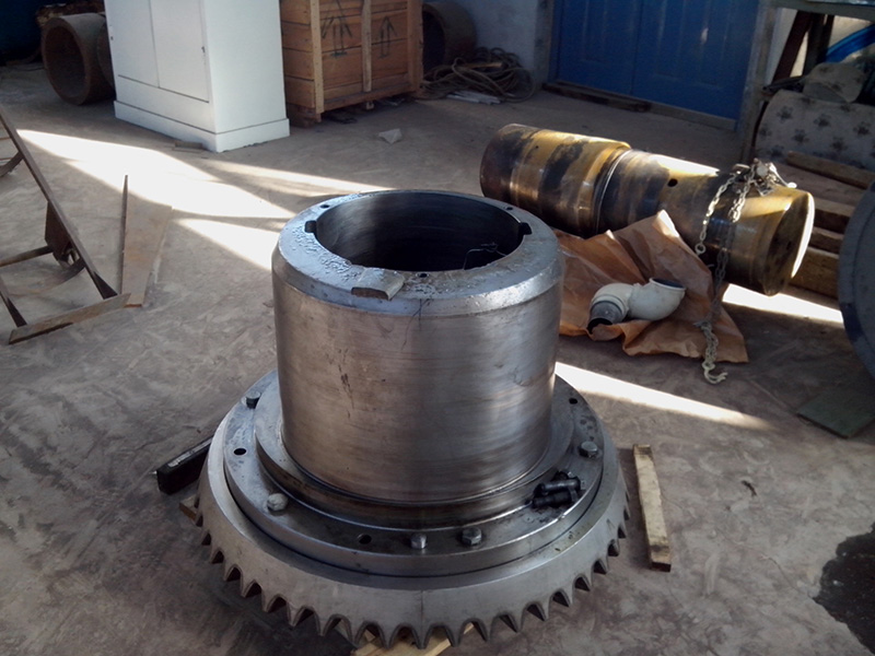 2014-06-08 客戶HP500 破碎機(jī)運(yùn)行中發(fā)生主軸斷裂,運(yùn)到我公司進(jìn)行維修。我司技術(shù)人員拆除主軸后發(fā)現(xiàn)主軸錐孔超差,然后對(duì)主機(jī)架進(jìn)行補(bǔ)焊、重新加工,最后安裝新主軸。